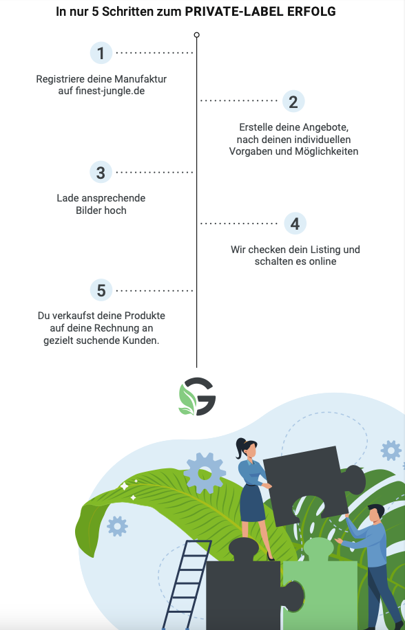 Für B2B-Kunden ist Finest Jungle mehr als nur eine Plattform. Es ist ein effizientes Tool, um ohne großen Aufwand die perfekten Private-Label-Produkte zu finden. Ganz gleich ob du nach spezialisierten Artikeln für das eigenen Geschäft für den Wiederverkauf oder individuell angepassten Produkte für das Unternehmen suchst, Finest Jungle bietet dir eine übersichtliche und leicht zugängliche Lösung, die Manufaktur & B2B-Kunden verbindet.
